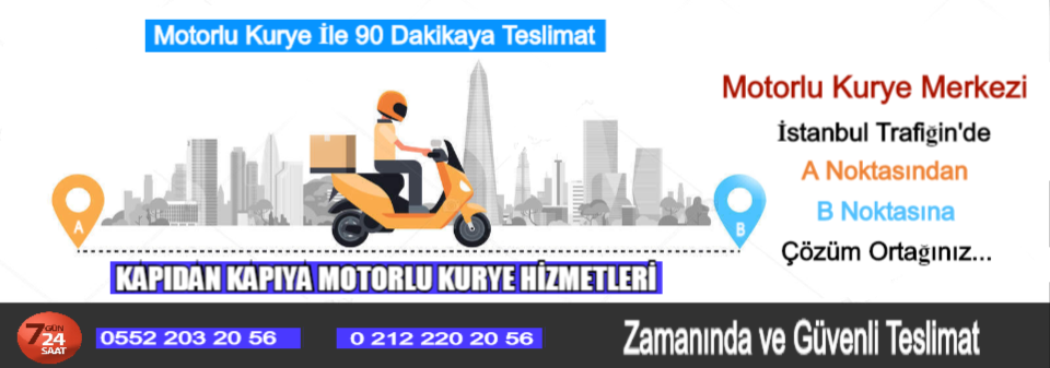 Motorlu Kurye Merkezi olarak Türkiye'nin en iyi motorlu kurye hizmetini vermekteyiz. Gün içerisinde acil taşınması gereken ürünleriniz 0 212 220 20 56 - 0 216 498 62 00 numaralı müşteri hizmetleri numaramızı arayıp adresi belirttiğinizde kuryemin en kısa zamanda ürünü almak için gelecektir. Motorlu kurye ekibimiz olarak gece gündüz demeden 7/24 sizlere hizmet vermekteyiz. Ekonomik oluşu ve hızlılığından dolayı motorlu kuryelerimiz rağbet görmektedir. Sizin de motorlu kuryeye ihtiyacınız var ise ve detaylı bilgi almak istiyorsanız bizleri aramaktan çekinmeyiniz. Arayın ürünü gelip varış noktasına güvenli bir şekilde teslim edelim.